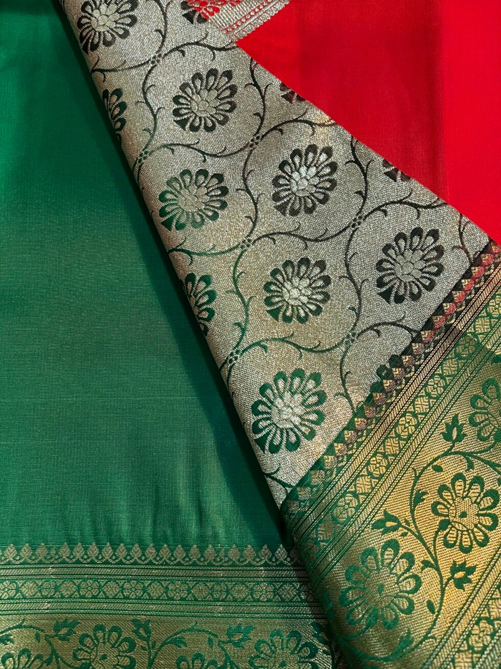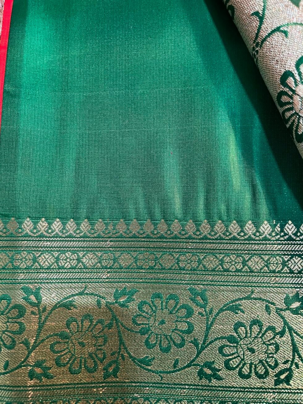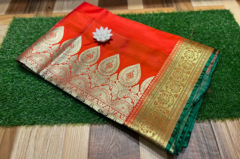 Orange and Green Katan Banarasi Saree